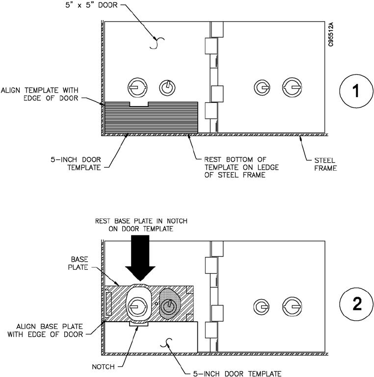 [2] Templates have been designed for use with Diebold 5-inch, 7-inch, and 10-inch SD doors. If you are installing base