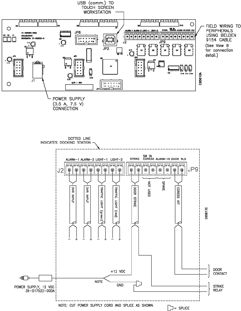 Figure A-1 Connections Required When Distance Between Hand Reader and Touch Screen Workstation Exceeds