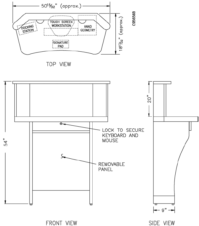 hand recognition reader and the touch screen workstation exceeds 50 feet. Refer