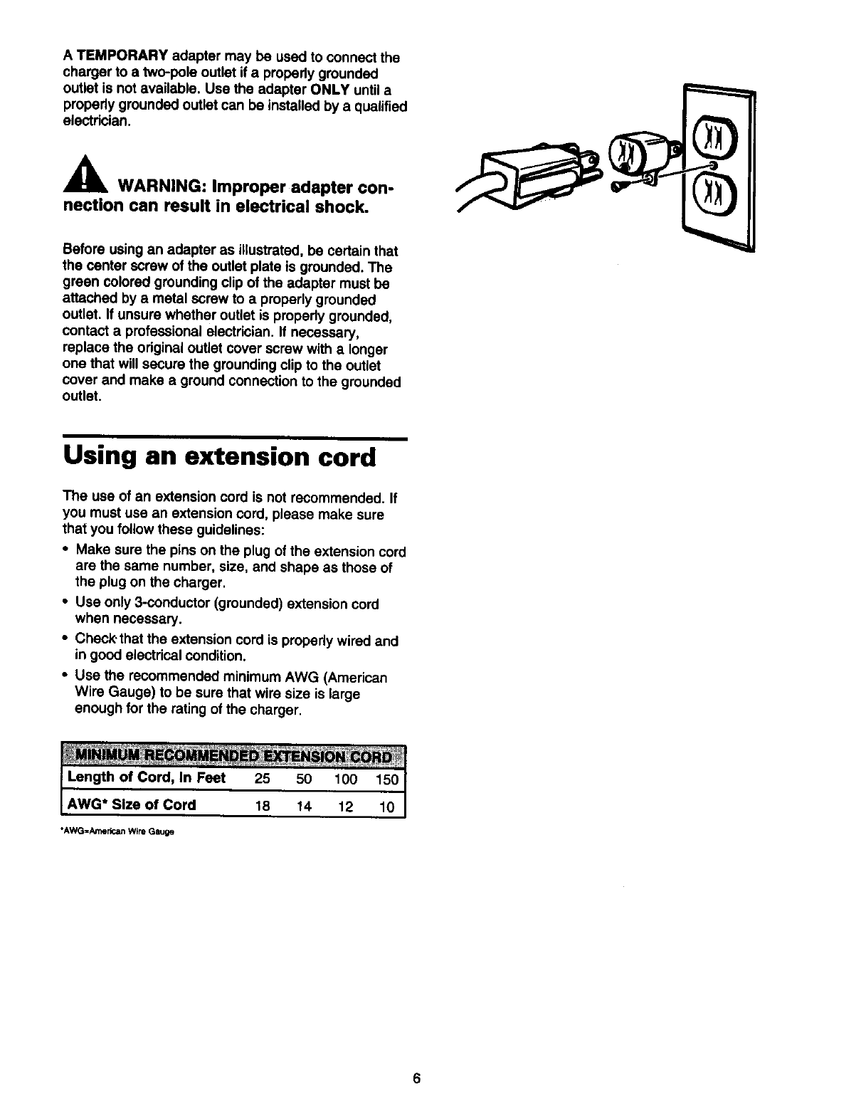 Using an extension cord ....................................... 6