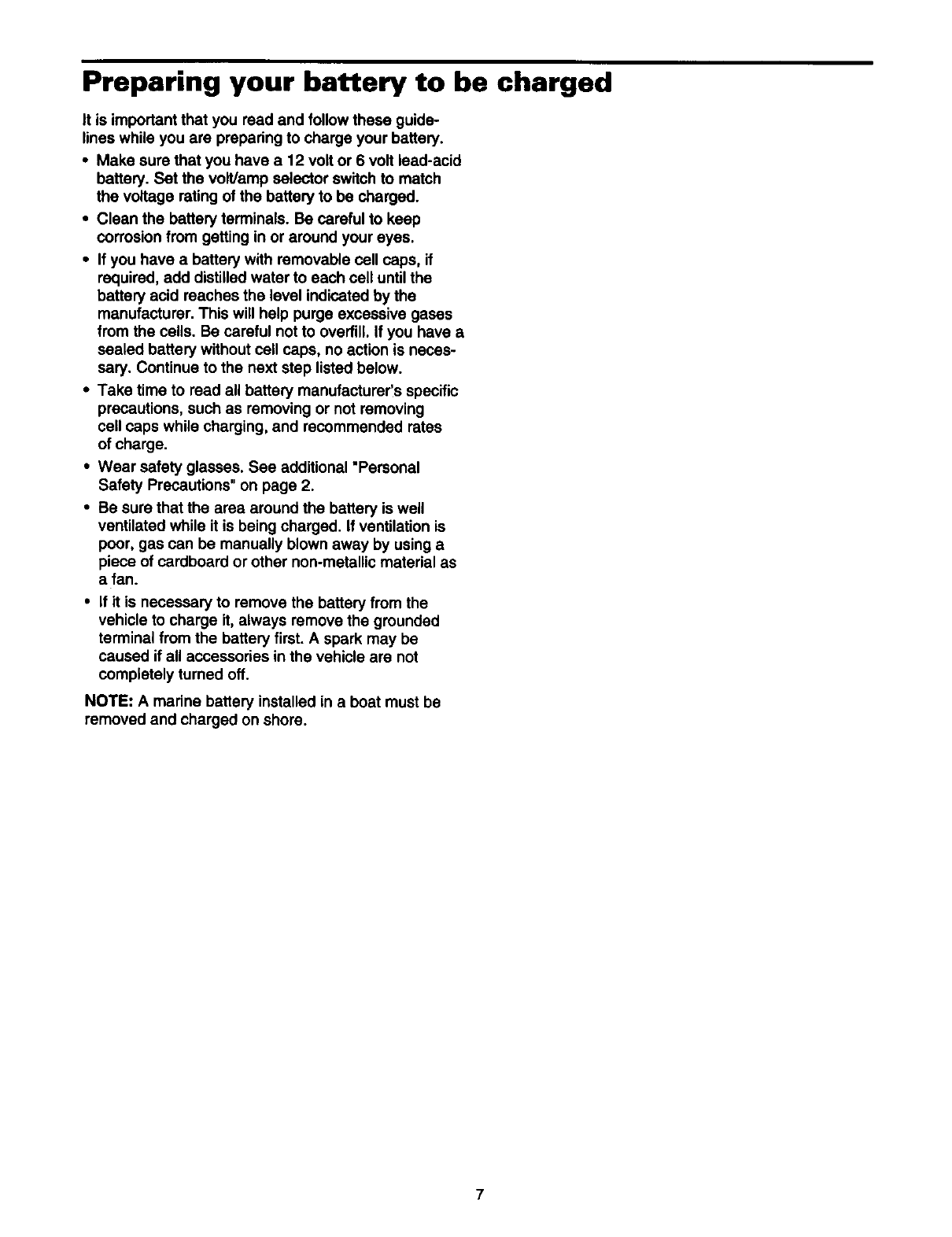 Preparing your battery to be charged .................. 7