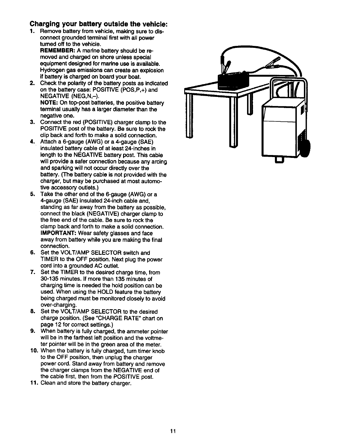 •Place charger as far away from battery being