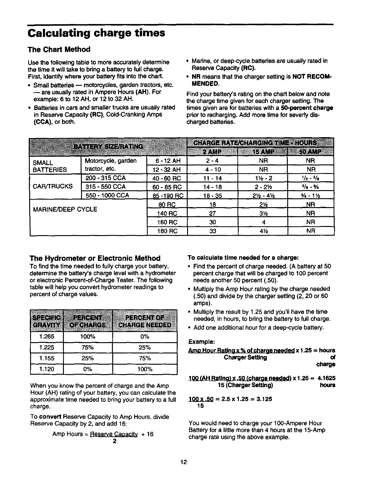 Calculating charge times .................................... 12