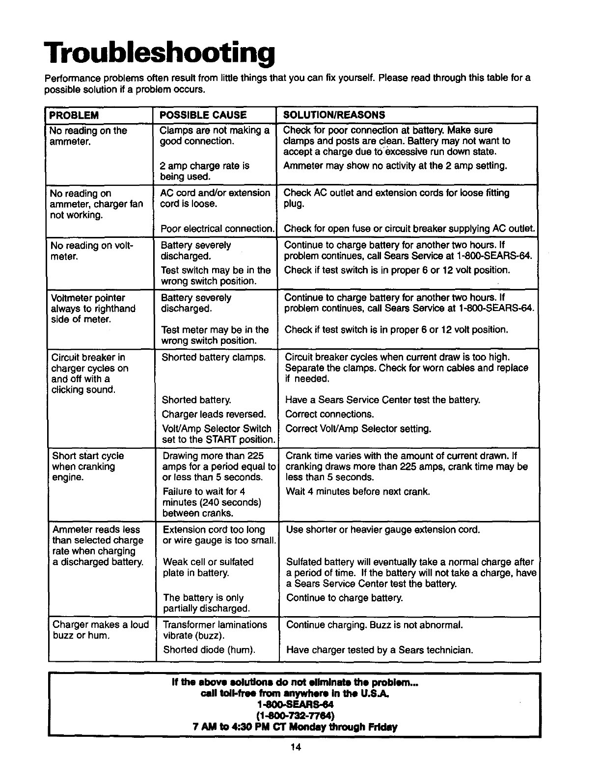 problem continues, call Sears Service at 1-800-SEARS-64.
