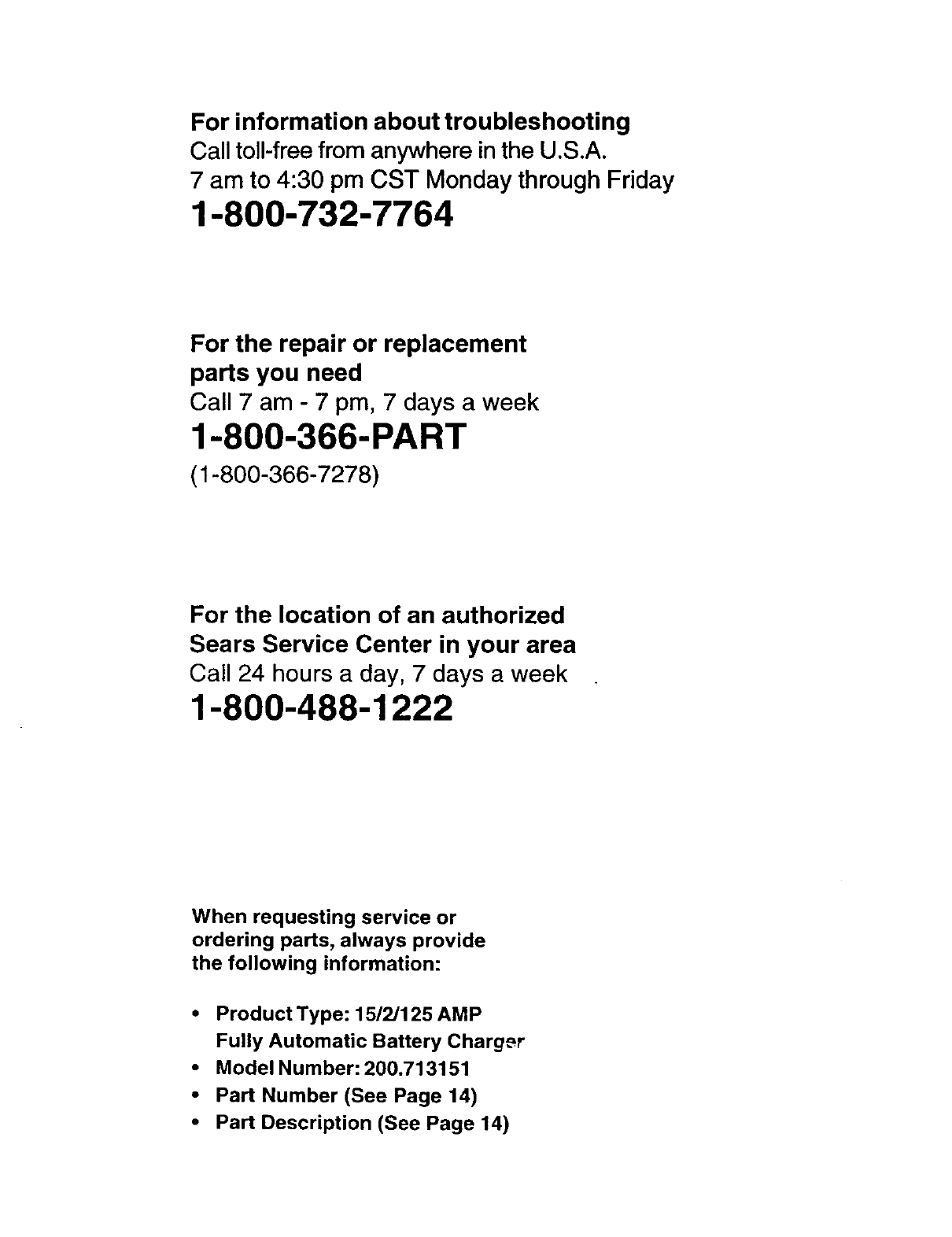 call toll-free from anywhere in the U.S.A. 1-800-SEARS-64 •(1-800-732-7764)
