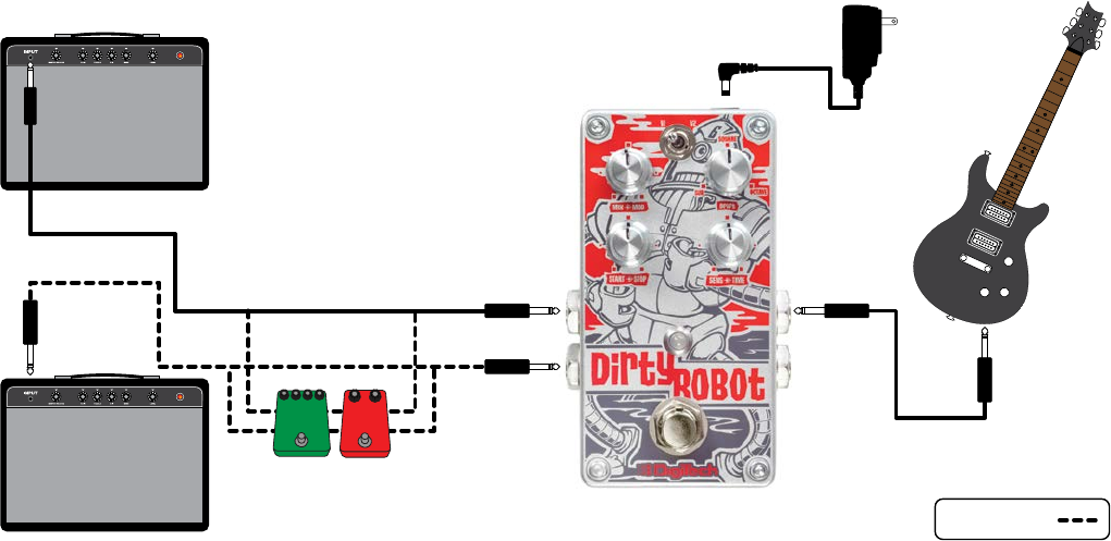 NOTE: For best performance, place the Dirty Robot as close to the front of the signal chain as possible