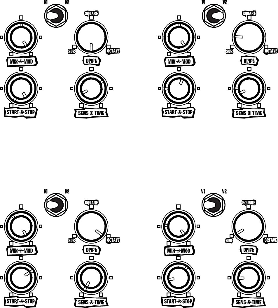clockwise for less effect. The outer MOD knob adds chorus to the synth signal.