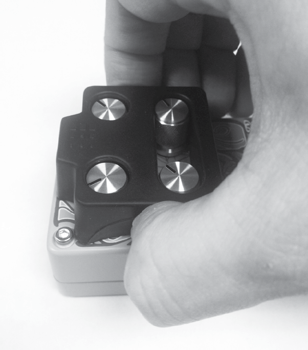 2. Orient the StompLock so that it lines up with the knobs and gently push it over the top of the