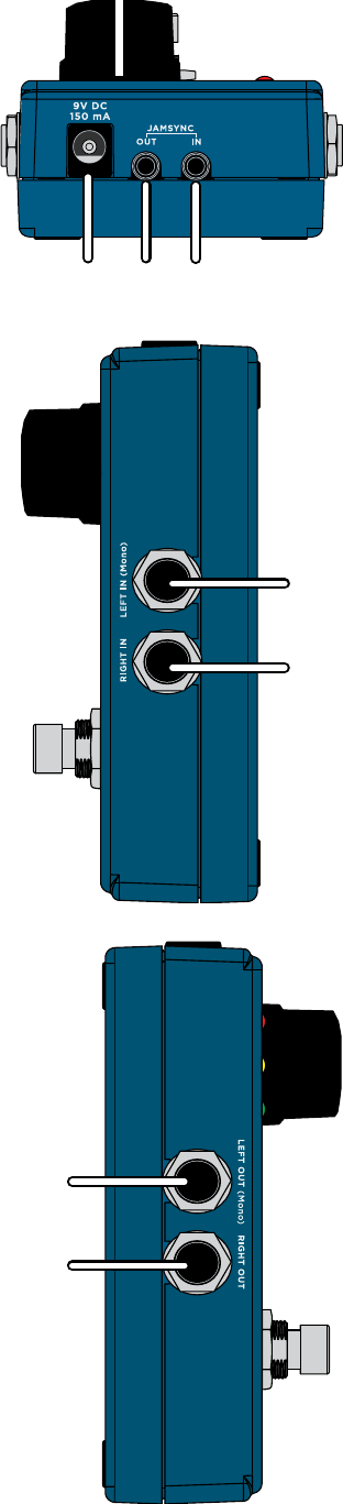 inputs/outputs, three LEDs to indicate looping status, and true bypass operation, the