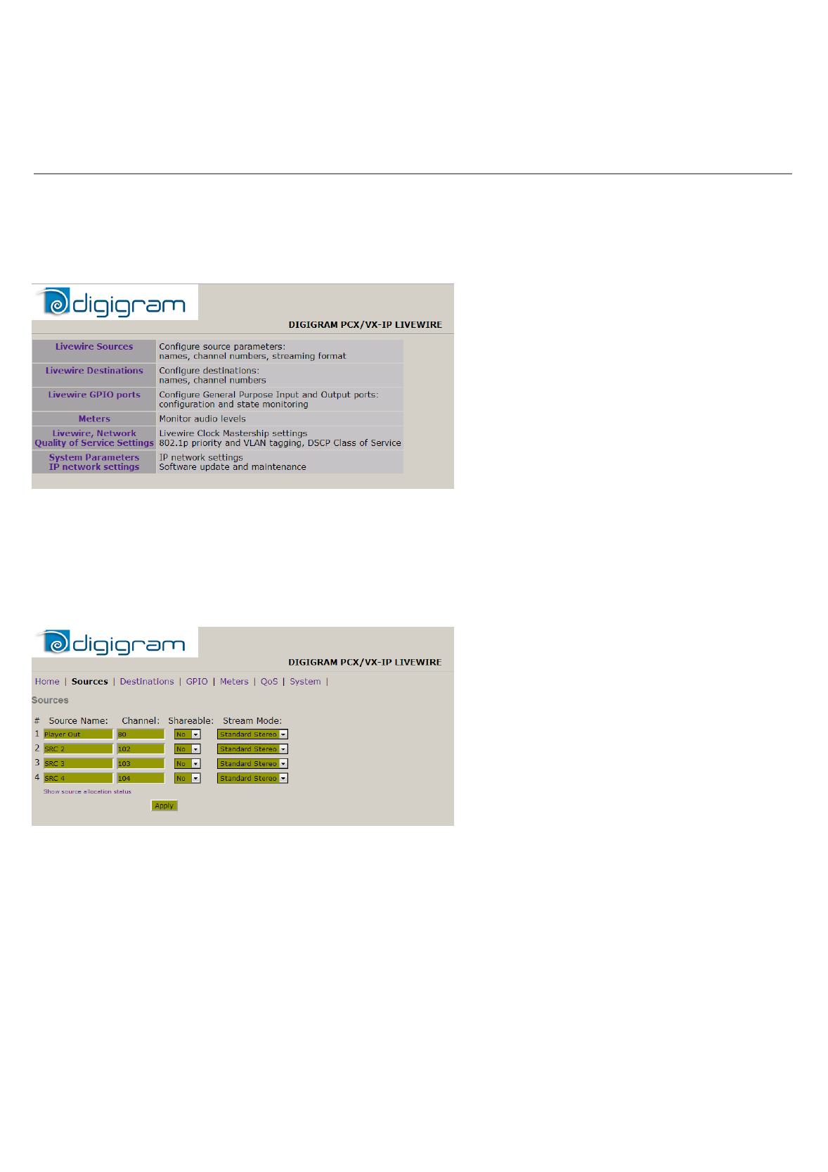 Configuring Livewire sources is necessary to assign the playback devices of the PCX-IP to Livewire inputs.