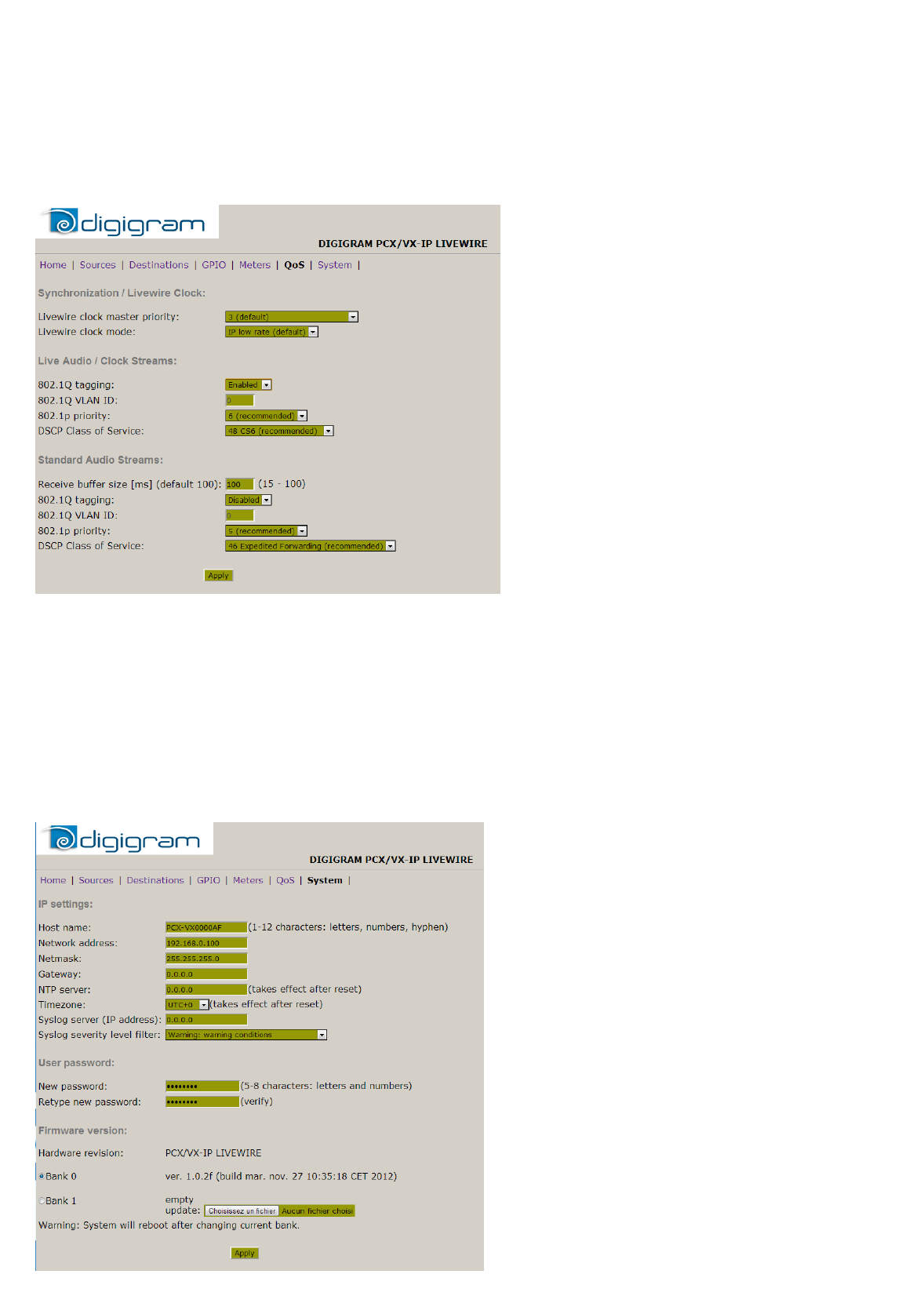 The “System” page allows setting the network parameters of the PCX-IP card. These parameters are the usual parameters of a