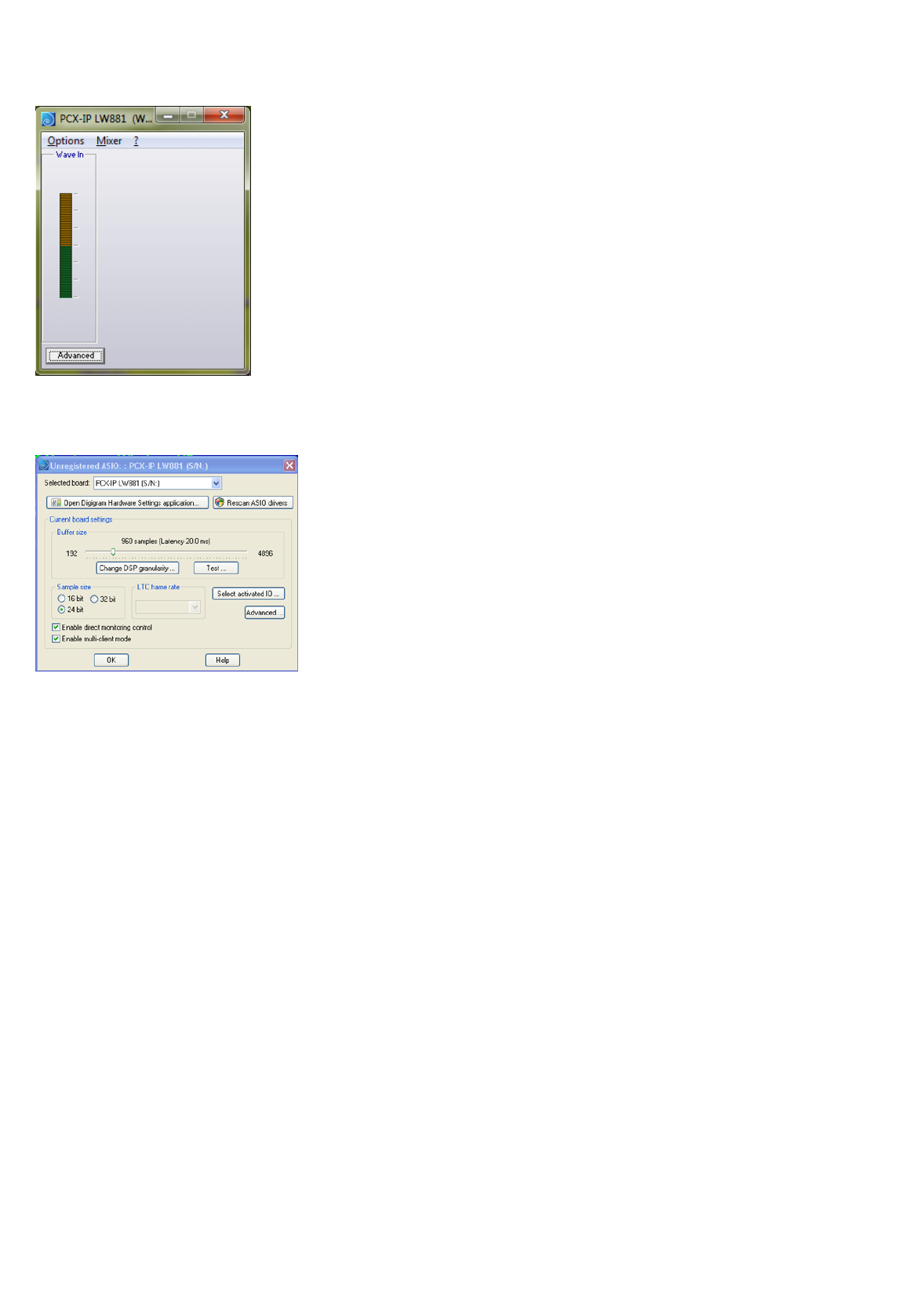 If the ASIO driver has been installed, the card is visible from the ASIO control panel, and from any ASIO application.