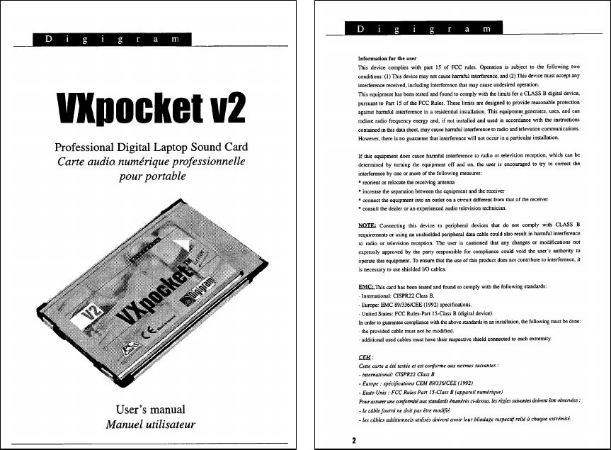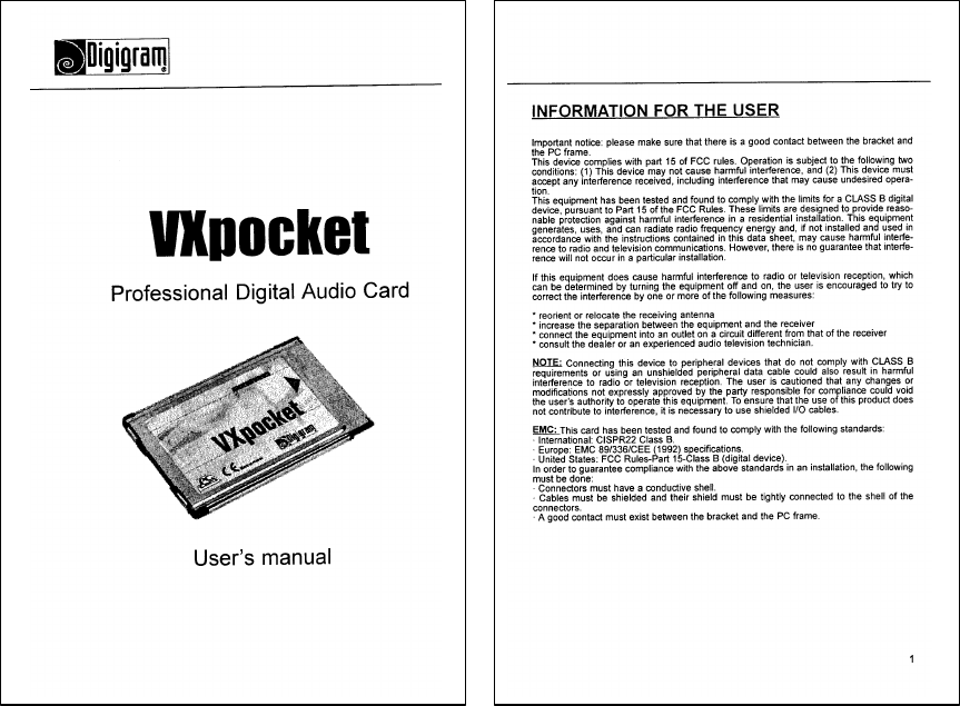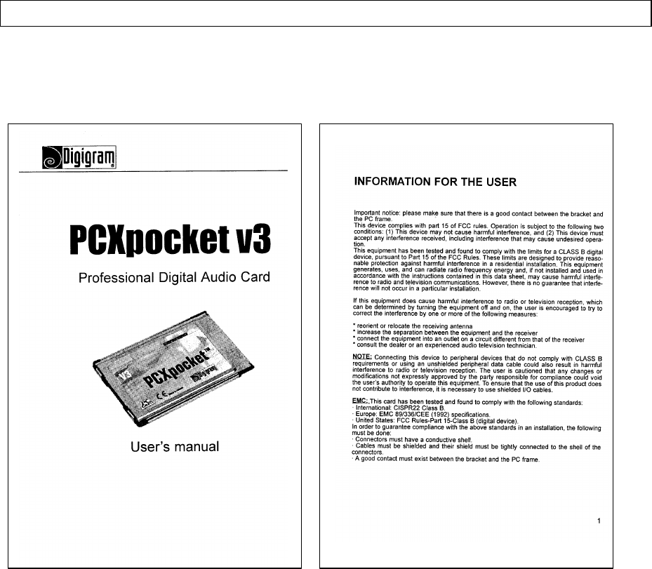 Digigram PCXPKV3 Professional Audio Card User Manual User manual