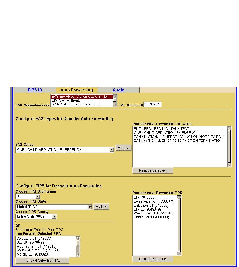 page is used to set the location code for the DASDEC. The Auto Forwarding sub-