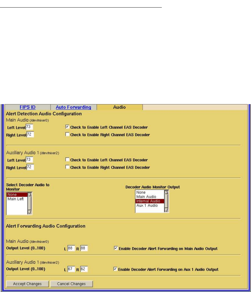 page is used to setup EAS alert automatic forwarding, and the Audio page is used