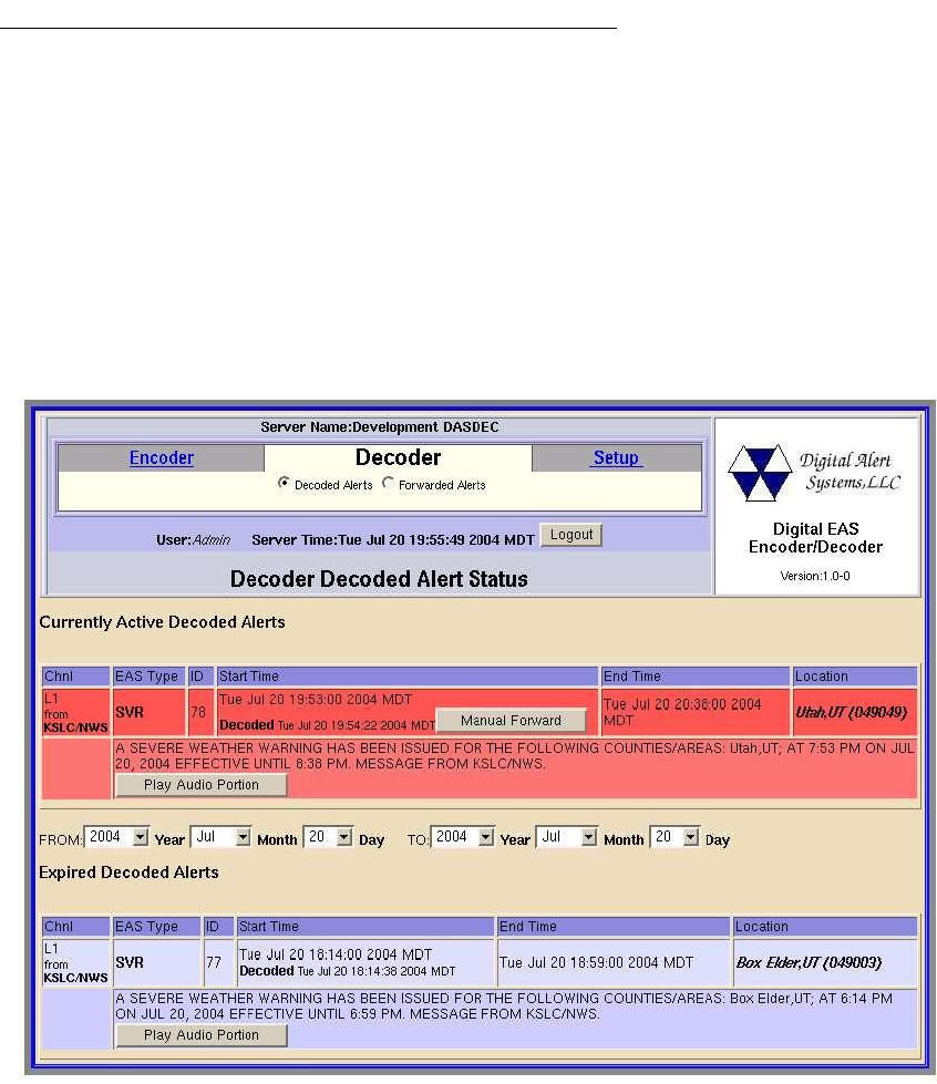 radio button. The page Decoded Alerts Status page displays two kinds of