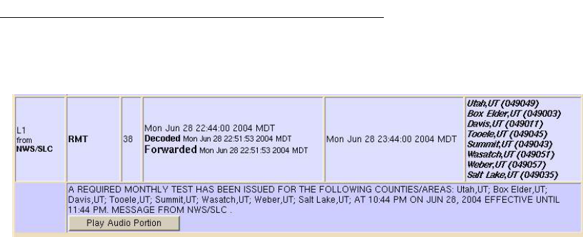 information about decoded EAS alerts. At the top of the page active EAS alert