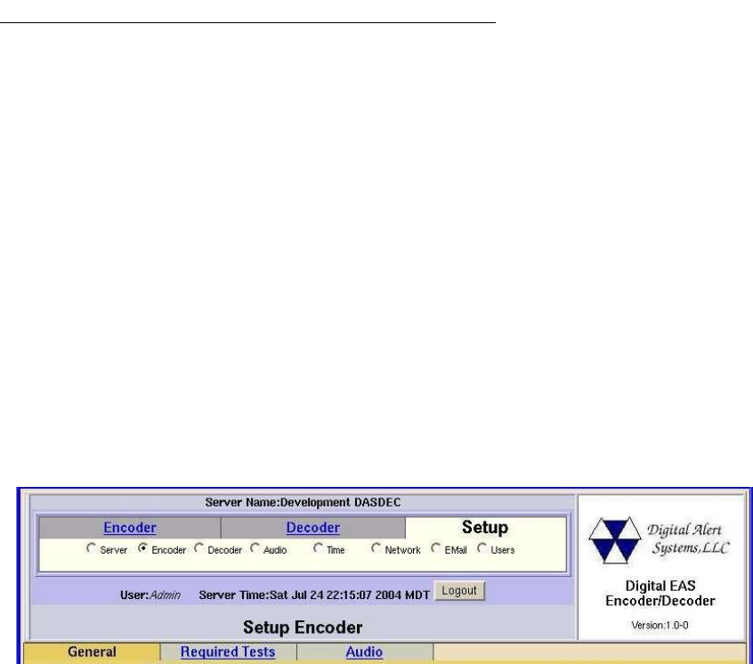 key, the DASDEC will not show an Encoder Setup page nor the main Encoder