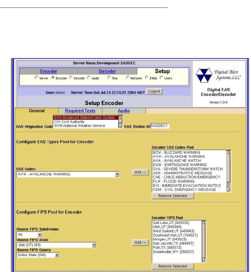 Setup pages before you use the DASDEC encoder. The Encoder Setup page has