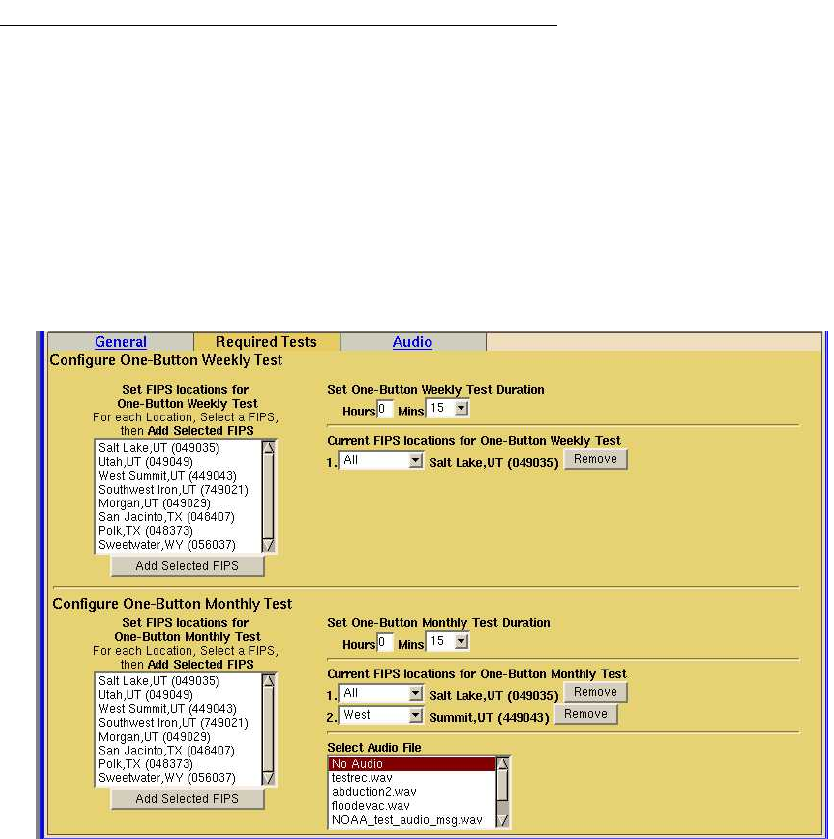 locations. The Required Tests sub-page is used to issue preconfigured Weekly