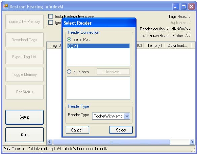 • Can’t make a serial port connection to the reader using the InfodexM utility.
