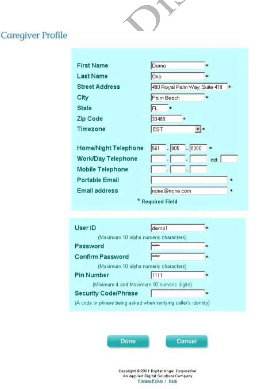 • The User ID and Password of your choice required for access to all Digital Angel information requests