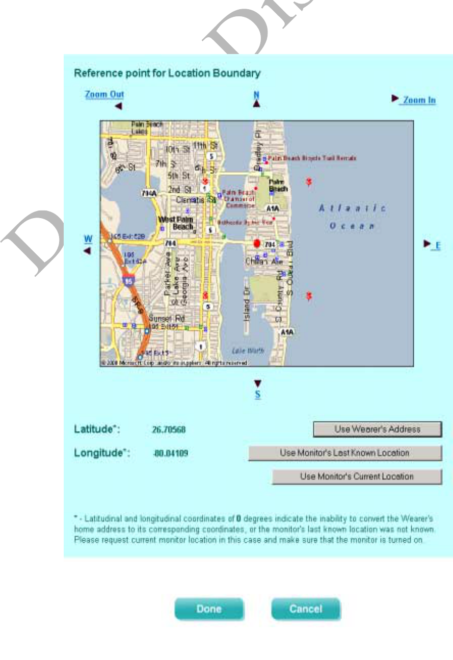 An out-of-range Location Boundary alert is triggered when the monitor location is outside the established