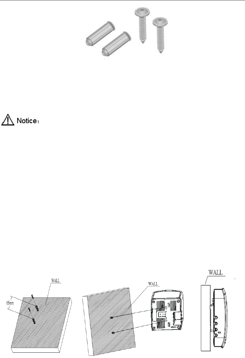 the wall mo unting. After received the device, the expansion screw tubes and screws as