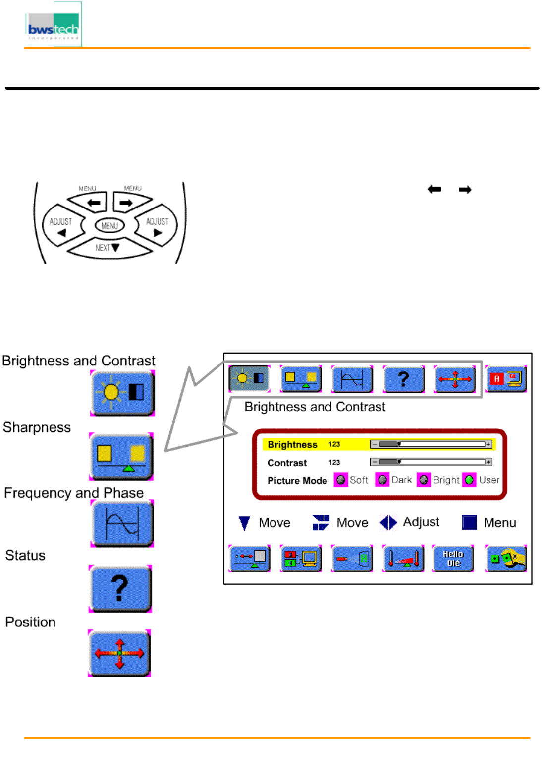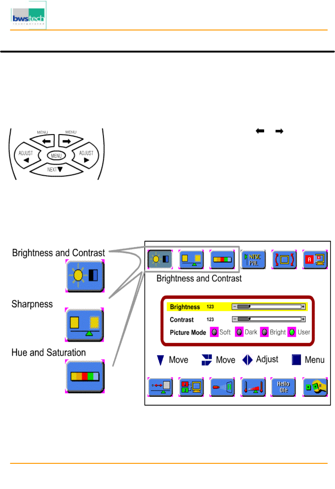 „ Press the [ADJUST] button to make the adjustment for Sound
