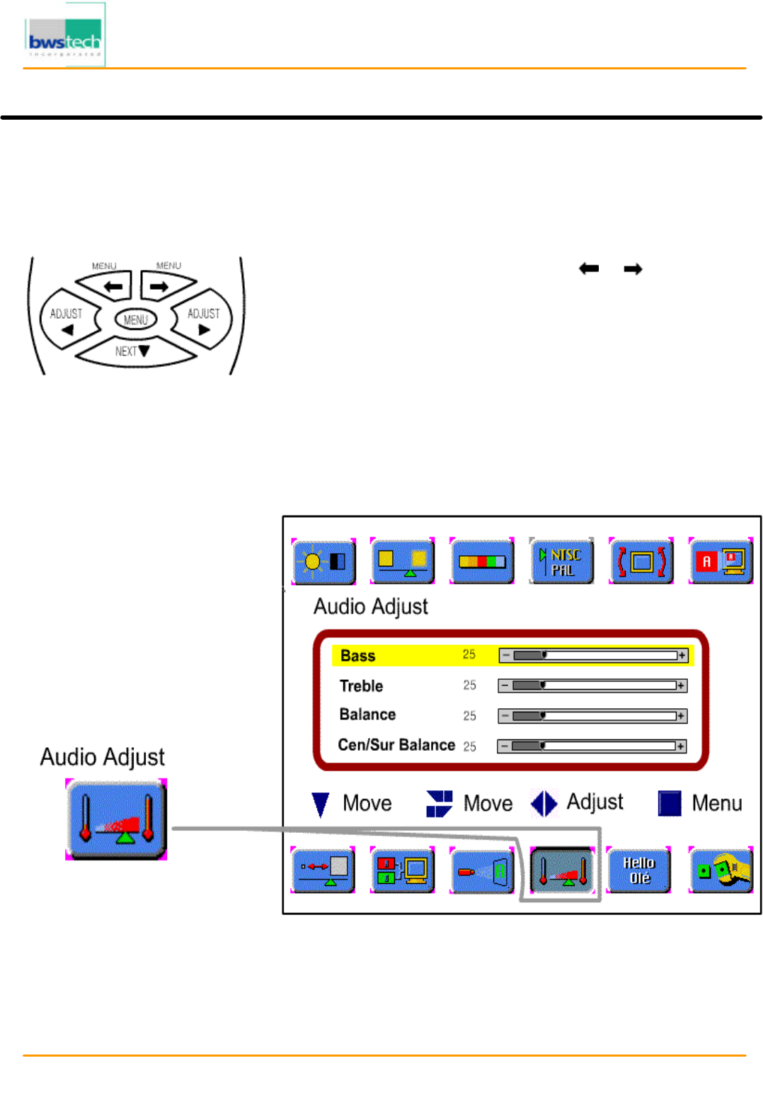‚ Select the Audio Adjust by using the [ ]/[ ] buttons.