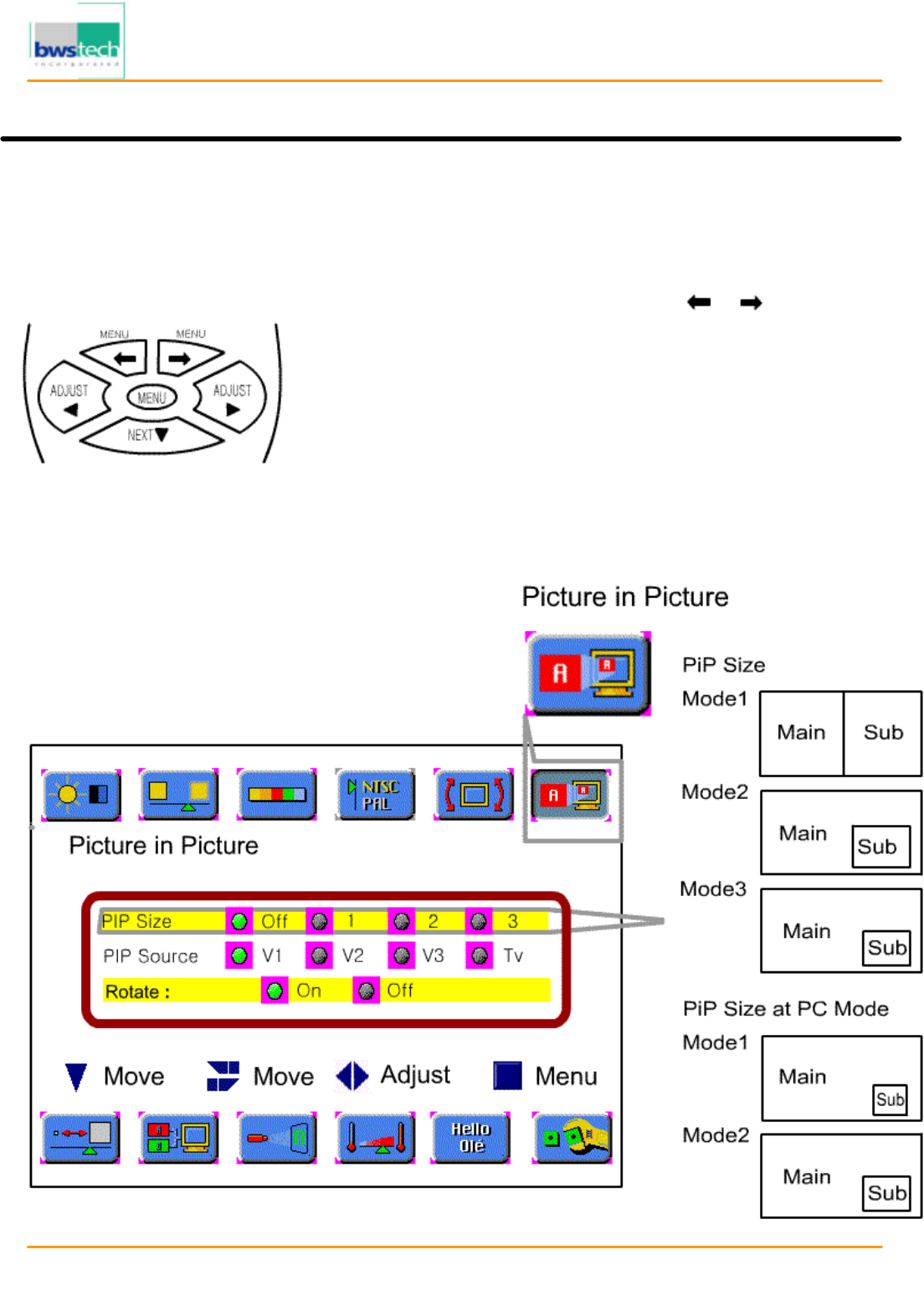 … Select PIP Source Mode by pressing the [NEXT] button.
