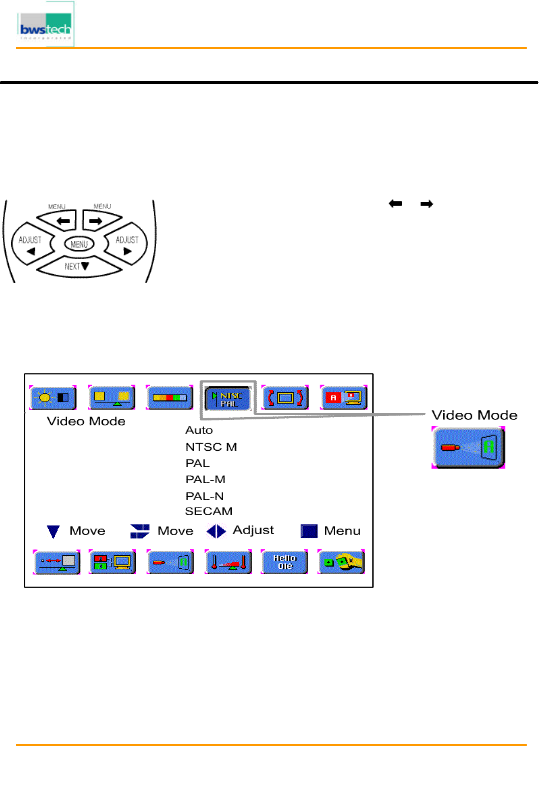 ‚ Select the Video Mode by using the [ ]/[ ] buttons.