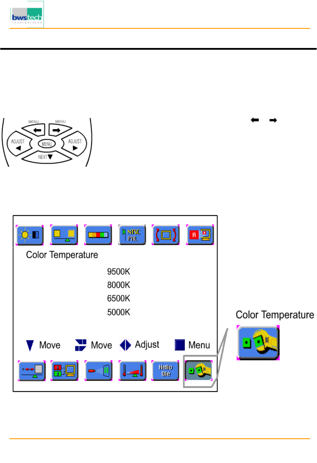‚ Select the Color Temperature by using the [ ]/[ ] buttons.