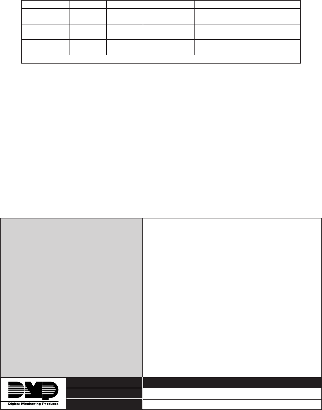 terminal 8, green to 9, and black to panel terminal 10. Use 1k Ohm EOL resistors, DMP Model 311, on keypad zones