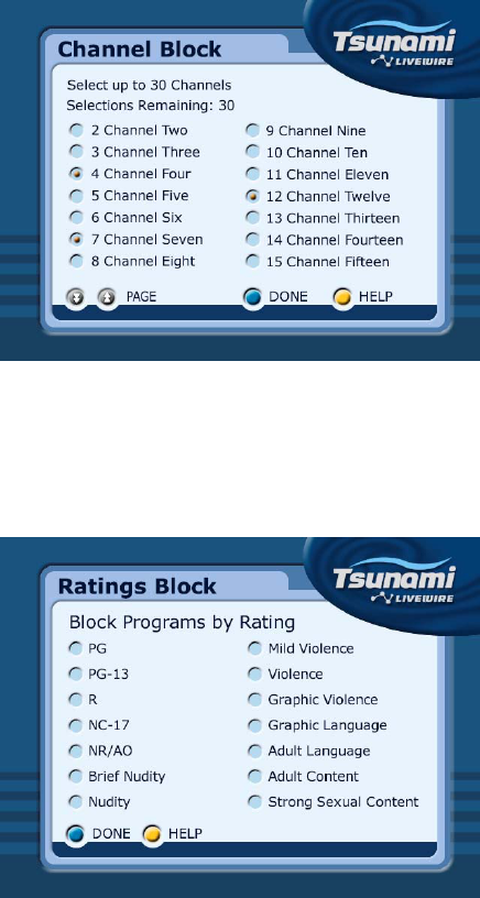 view. Select “DONE” onscreen to confirm blocked channels and return to the