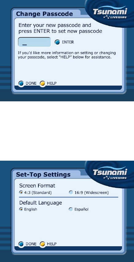 numbers 0-9 on your Remote Control, then select “ENTER” onscreen.