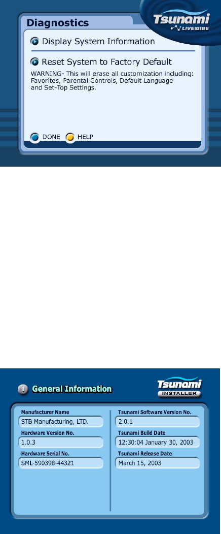 DISPLAY SYSTEM INFORMATION: Loads the TSUNAMI INSTALLER