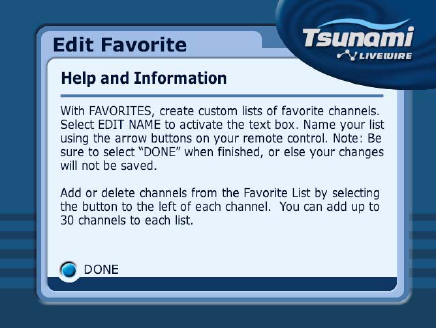 Select “DONE” onscreen to exit HELP AND INFORMATION and return to the