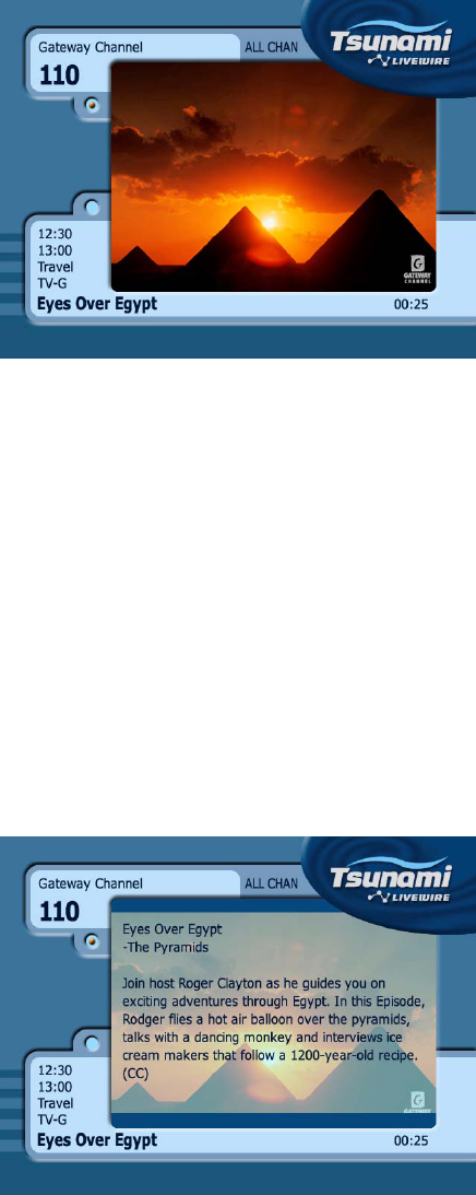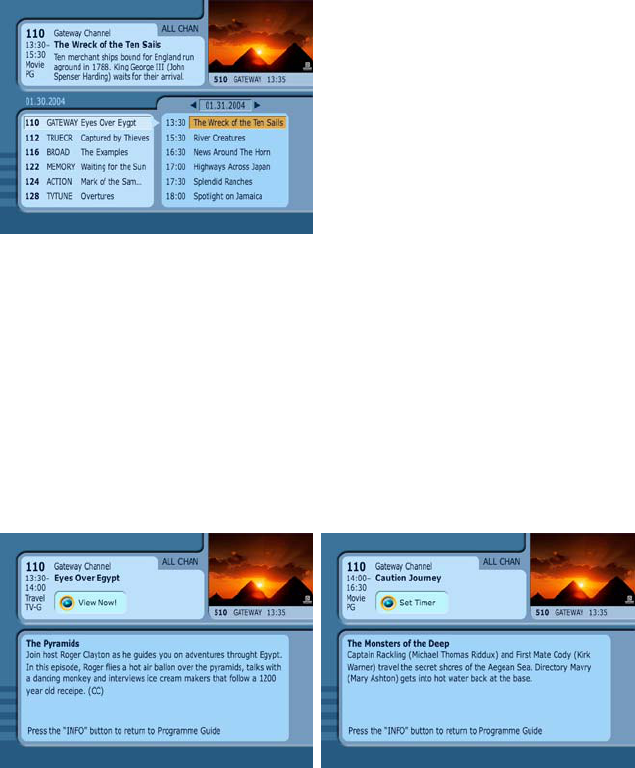 Note: HELP AND INFORMATION screens are also available for PROGRAMME