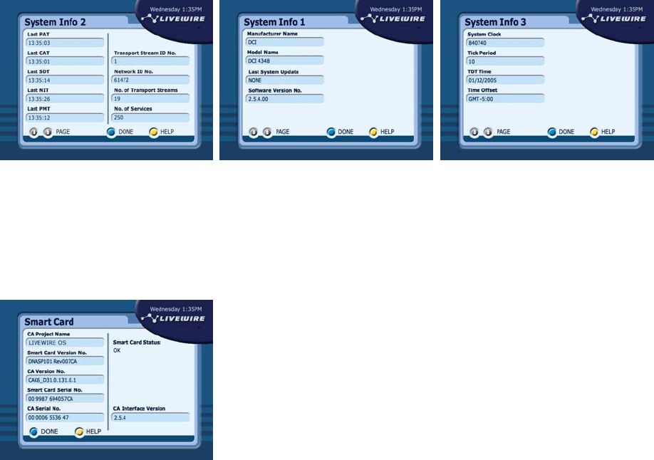 The information on these screens indicate details about your Digital Set-Top Box, System Software,