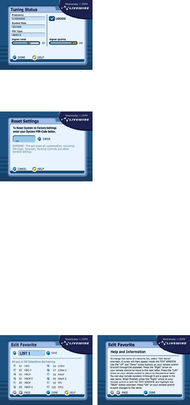 With this screen you can quickly see if your Digital Set-Top Box is locked to the correct frequency.