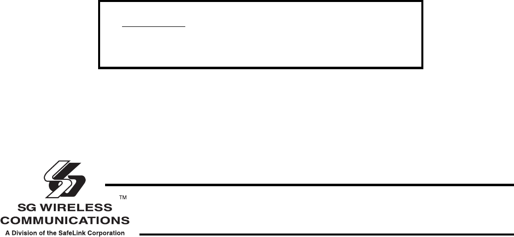 SG Wireless Communications recommends that the entire system be completely tested on a regular basis. However, despite