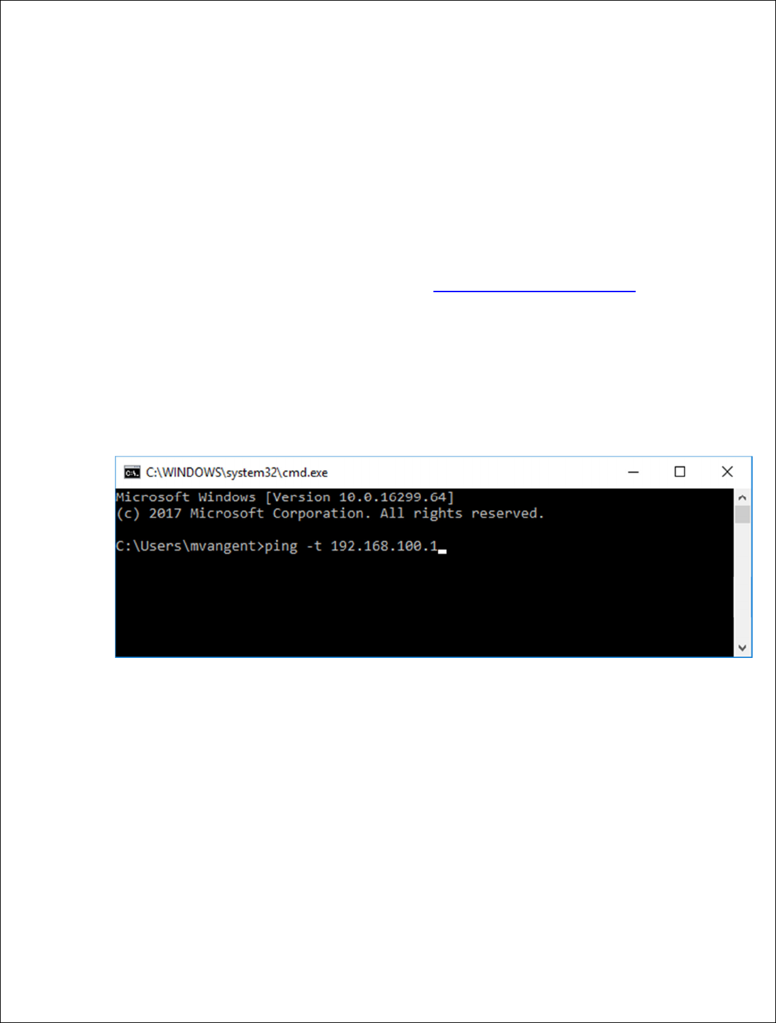 - If you can’t get into the device open a command prompt window Ping the