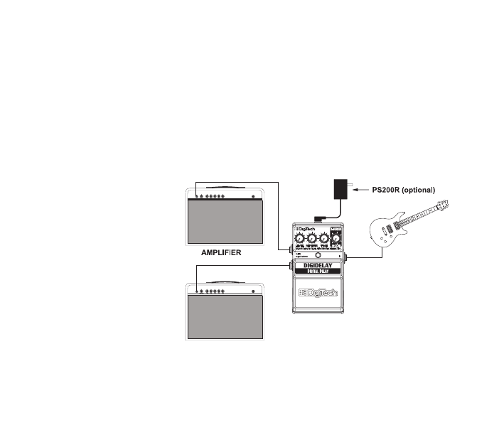 guitar cable to the DigiDelay Input Jack (6) or connect the PS200R