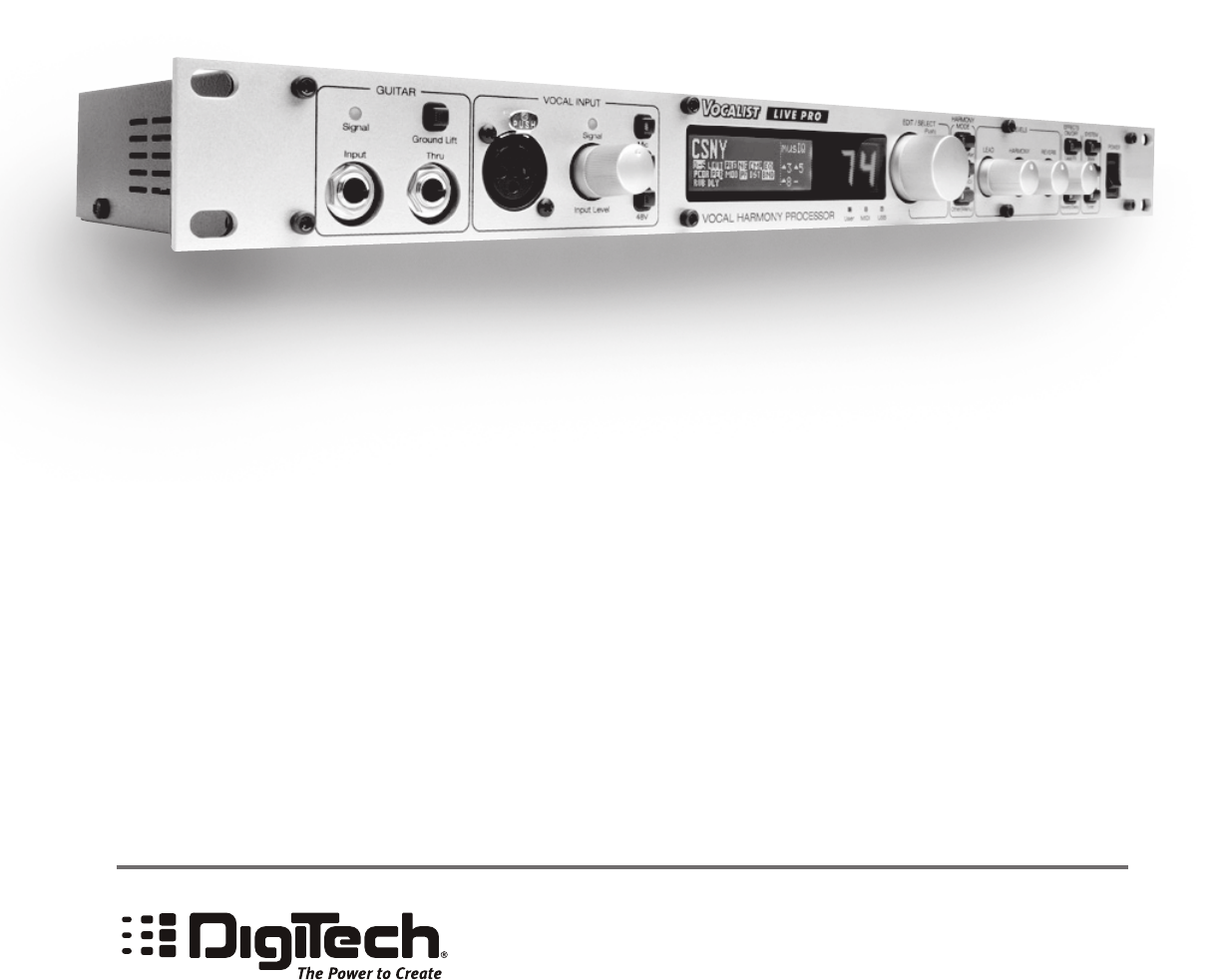 DigiTech, Vocalist® Live Pro, and Lexicon are trademarks of the