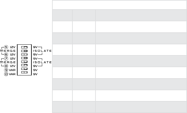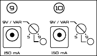 Outputs 9 & 10: 2 x 9V/5-9V 150mA