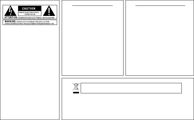 the risk of fire or electric shock, refer servicing to qualified service personnel or equivalent.