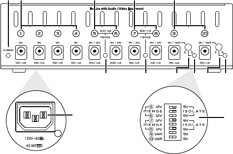 Outputs 5 & 6: 2 x 9V/12V 200mA (9V/12V merged 400mA)