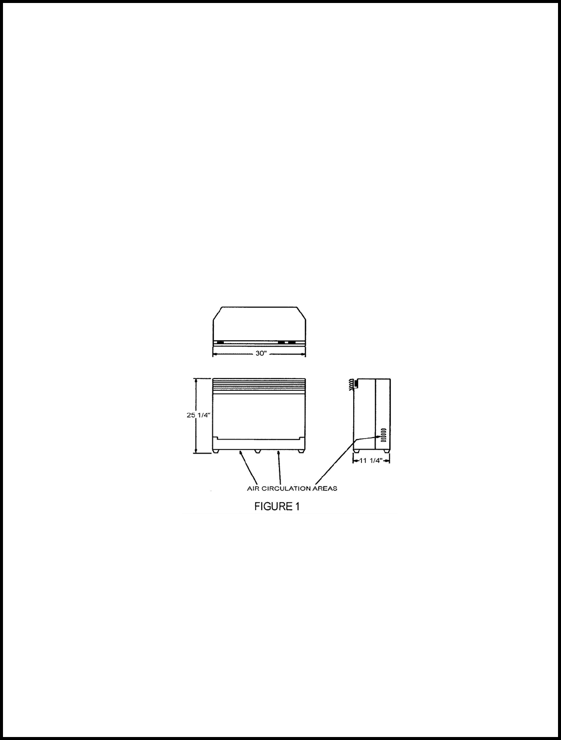 at least 3 feet (0.9m) from the front of the unit.