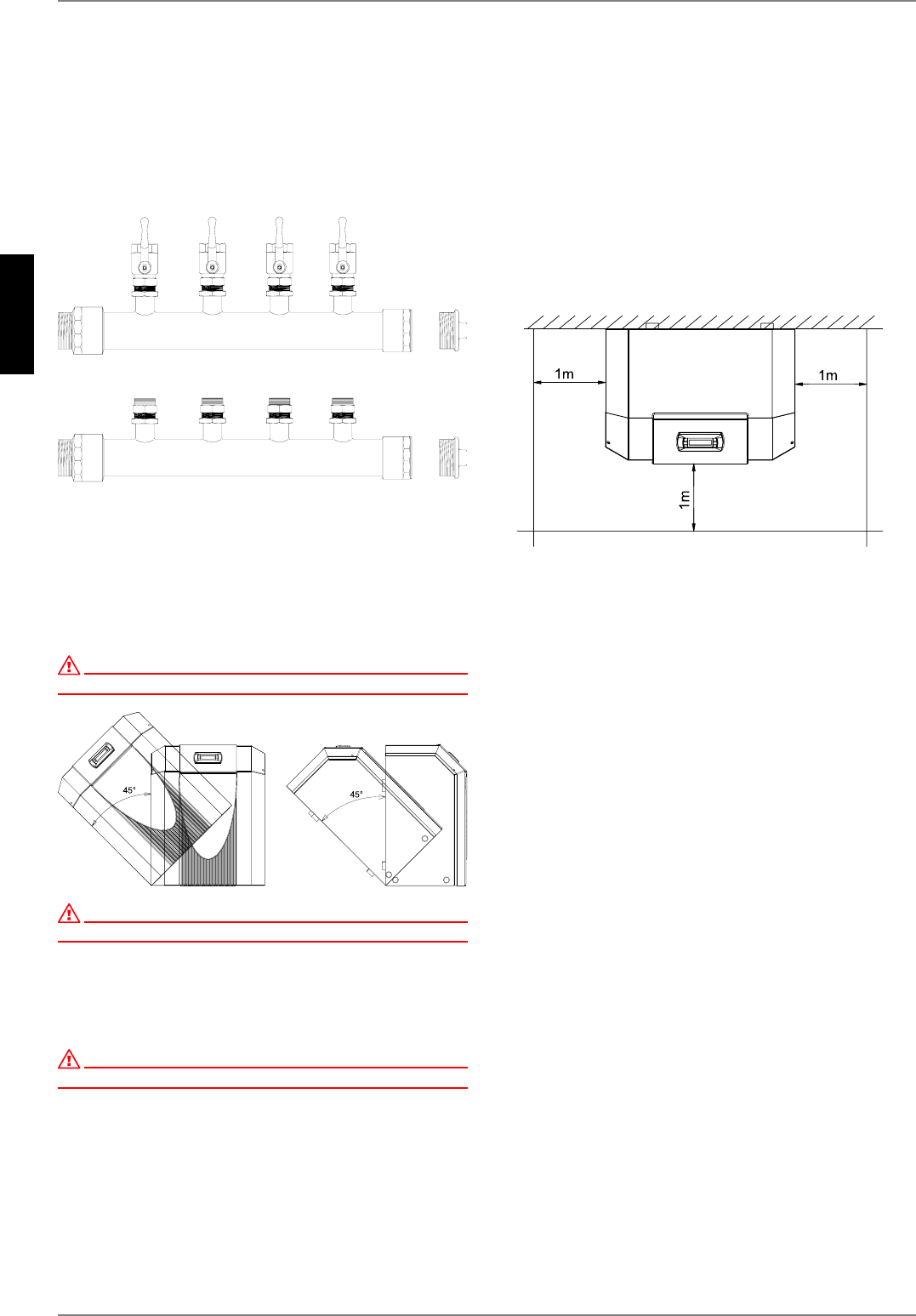 The heat pump must not be tilted more than 45° (in any direction).